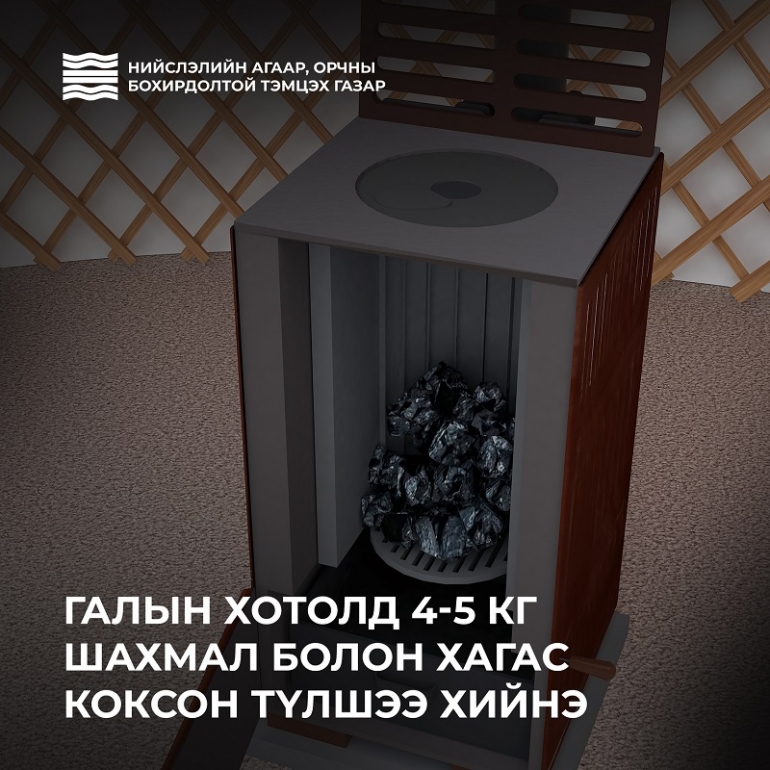 • Галын хотолд 4-5 кг шахмал болон хагас коксон түлшээ хийнэ.