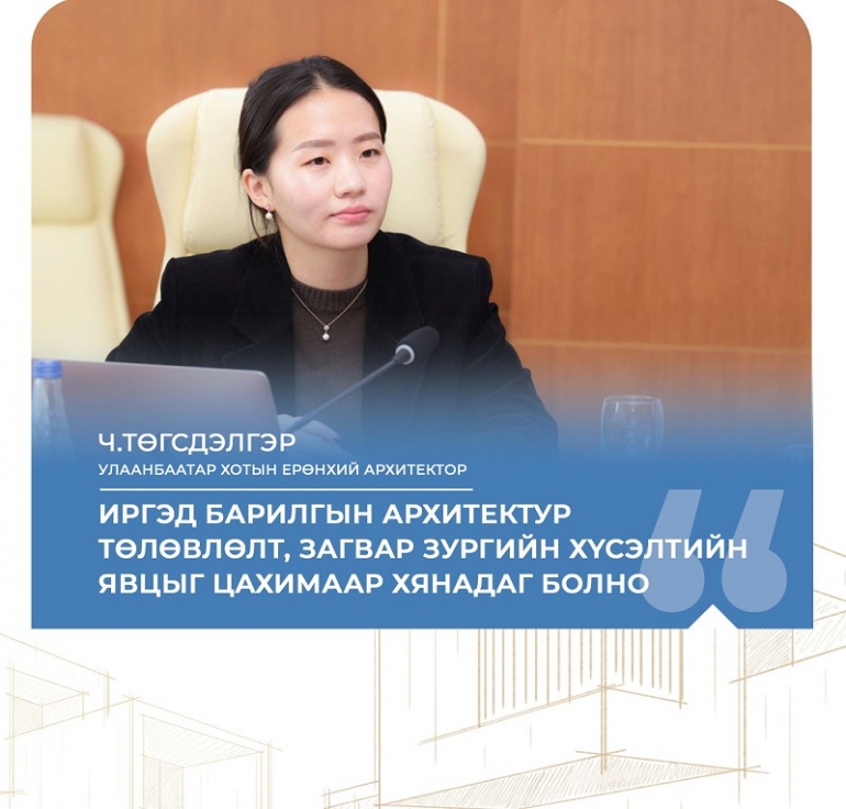 Иргэн, ААН, байгууллага шинээр барилга барих, өргөтгөх болон буулгаж шинээр барих зэрэг тохиолдолд албан ёсны баримт бичгийг бүрдүүлдэг. Ингэхдээ архитектур төлөвлөлтийн даалгавар, загвар зургийн хүсэлтээ нийслэлийн Хот байгуулалт, хотын стандартын газар ирүүлдэг. Тус хүсэлтийг ганц нийслэлийн Ерөнхий архитектор хянан хэлэлцээд шийдвэрлэхгүй. Мэргэжлийн зөвлөлийн гишүүдээр бүх стандарт, норм ямар байх ёстой талаар хэлэлцүүлж, тус бүр зөвшөөрсний үндсэн дээр хамгийн сүүлд нийслэлийн Ерөнхий архитекторын гарын үсгээр баталгааждаг үйл явц юм. Мөн шаардлага хангаагүй бол зөвлөмж өгч буцаахаас өөр аргагүй.