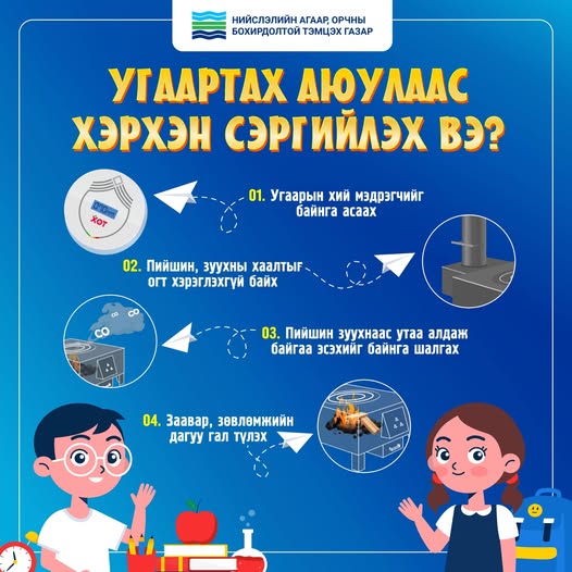 Угаарын хийн эрсдэлээс сэргийлж, дараах зөвлөмжийг тогтмол мөрдөж дадаарай.