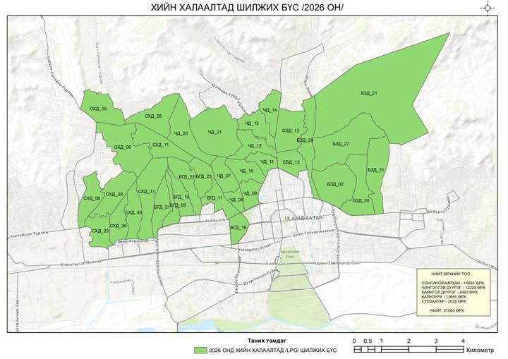 Нийслэлийн агаарын чанарыг сайжруулах зорилтын хүрээнд 2026 онд “Агаарын чанарыг сайжруулах ногоон бүс”-д хамаарах таван дүүргийн 35 хорооны өрхийг шингэрүүлсэн нефтийн хийн халаалтад үе шаттайгаар шилжүүлэхээр ажиллаж байна.