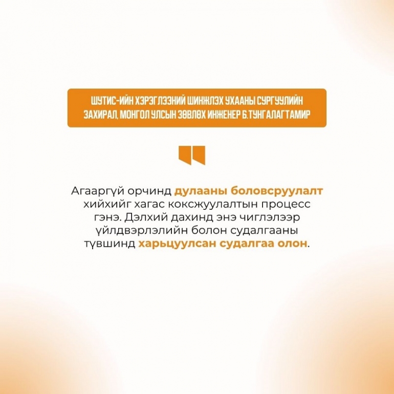 ШУТИС-ийн Хэрэглээний шинжлэх ухааны сургуулийн захирал, Монгол Улсын зөвлөх инженер Б.Тунгалагтамир: Агааргүй орчинд дулааны боловсруулалт хийхийг хагас коксжуулалтын процесс гэнэ.